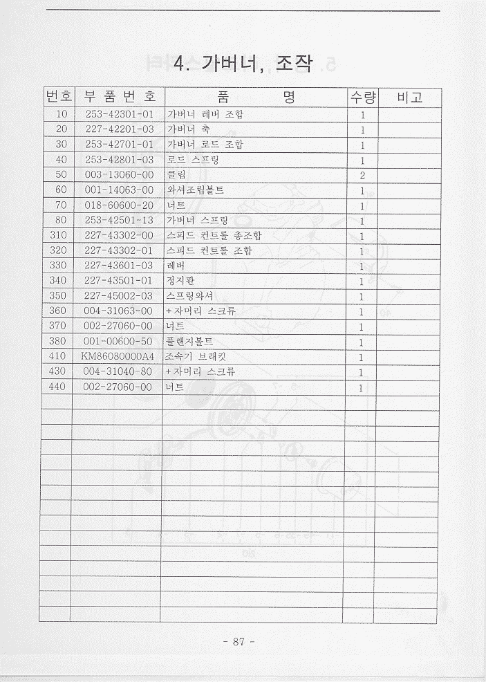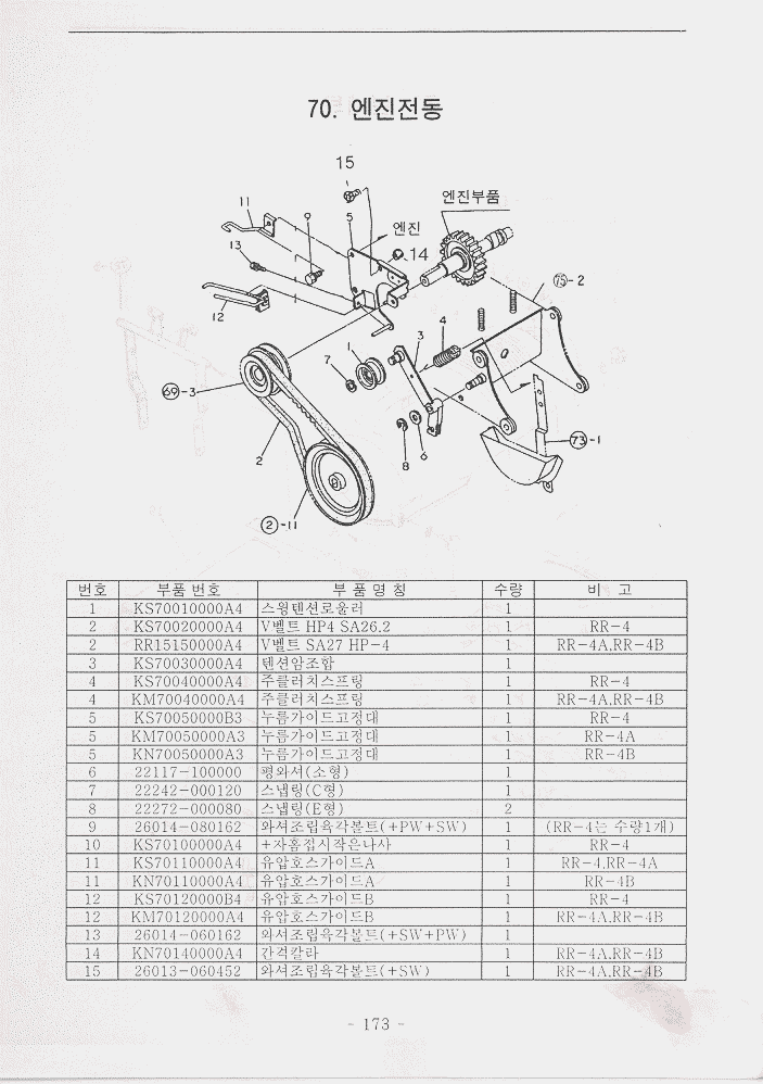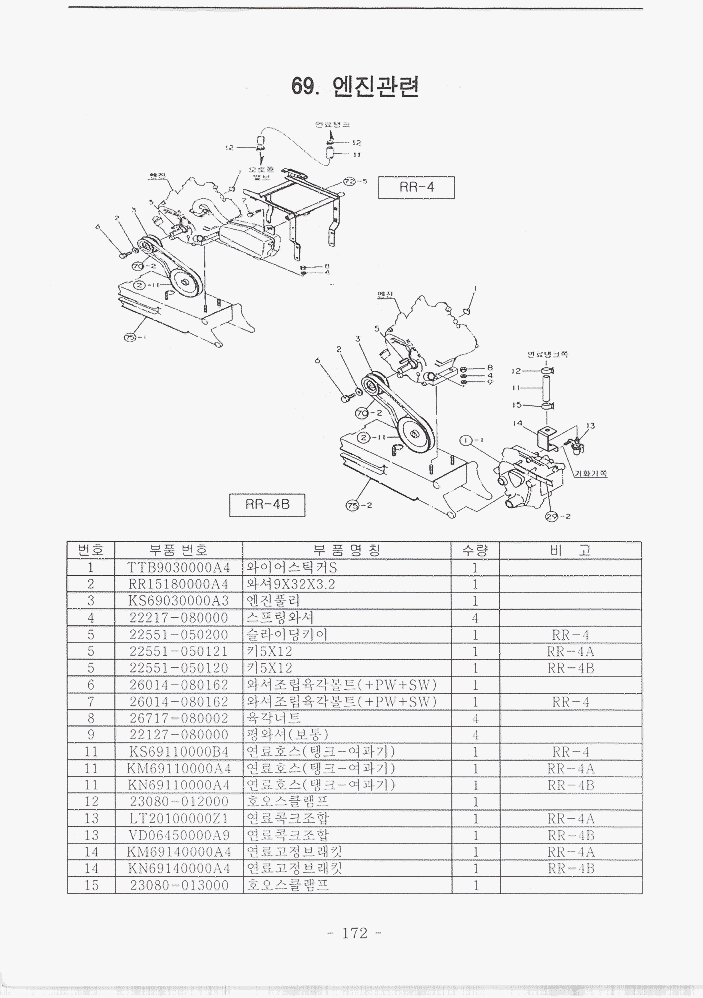 목차 | 사진 | 설명서 | 엔진부78~95/172_173 | 밋션부96~108 | 주행부109~129 | 식부부130~145 | 묘탑재부146~156 | 핸들부157~171 | 카바및기타174~193 | 4A엔진부196~203 | 4B엔진부206~211 |